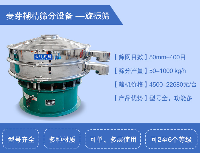 以上就是小編為大家介紹的兩款麥芽糊精振動(dòng)篩(旋振篩和直排篩)希望通過(guò)小編的介紹您可以更深入的了解這兩款設(shè)備,如果您在篩機(jī)選擇上還有什么疑問(wèn),可以致電大漢機(jī)械,我們將安排專業(yè)人士為您做專業(yè)的答復(fù)~