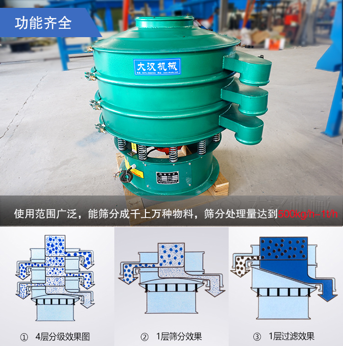 碳鋼振動篩的使用范圍廣泛,能篩分成千上萬種物料,如:洗衣粉、膩?zhàn)臃?、石英砂、谷糠、紙漿、尿素、聚乙二醇、、飼料、建筑石膏粉、催化劑等,可滿足10目 - 400目物料的篩分、過濾、分級、除雜,功能齊全、簡單篩分用單層、多規(guī)格分級用多層,篩分處理量達(dá)到500kg/h-1t/h,可以與生產(chǎn)線結(jié)合。