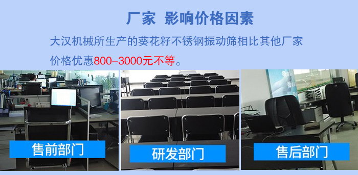 大漢機(jī)械所生產(chǎn)的葵花籽不銹鋼振動篩在原有的篩分工藝基礎(chǔ)上精益求精,不僅每一道工序自主研發(fā)、生產(chǎn)設(shè)計(jì)和銷售,省去了大量的外購成本和中間商環(huán)節(jié),力求成本較低化薄利多銷讓利給廣大用戶,相比其他廠家價(jià)格優(yōu)惠800-3000元不等。