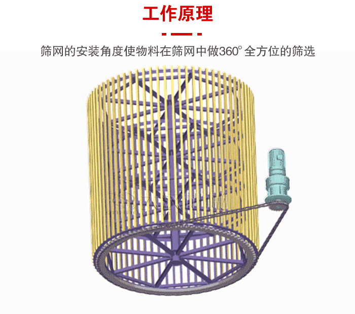 大型滾筒篩體大致分為:滾筒,驅(qū)動裝置以及皮帶輸送三個部分,產(chǎn)品的結(jié)構(gòu)比較簡單,維修方便。