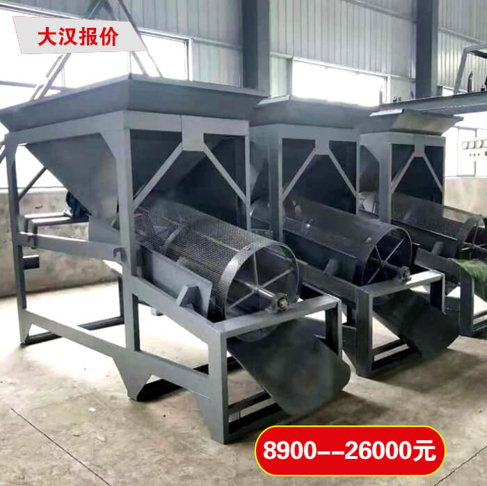 物料從料斗進入滾篩中,經(jīng)過篩網(wǎng)網(wǎng)孔大小的篩選以及電機帶動軸承于篩網(wǎng)的滾筒,能夠保證物料在篩網(wǎng)中做360°全方位的篩選,同時經(jīng)過篩網(wǎng)選出的物料就會,經(jīng)皮帶輸送機,輸送到固定的沙堆或者直接裝車運走,沒有篩出的物料就會隨篩筒滾動到篩尾,從廢料口流出。