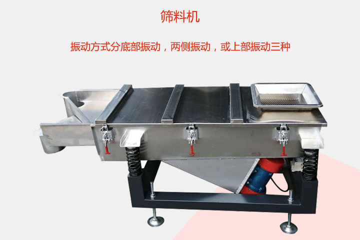 篩料機為方形振動篩,該設(shè)備采用底部振動,兩側(cè)振動,或上部振動三種振動方式,但其底部振動是比較常見的,該設(shè)備采用的雙振動源底部振動方法。