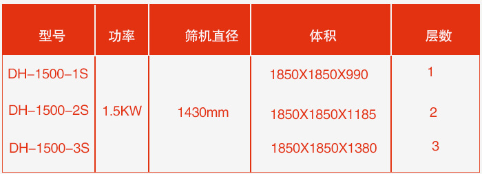 1500型振動篩代號示意圖:DH:大漢標志S:標準型P:普通型