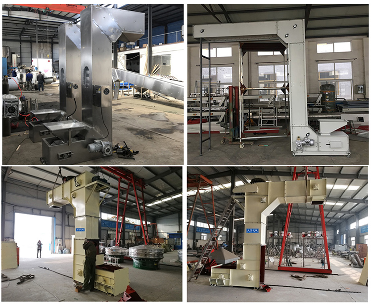 z型斗式提升機(jī)食品廠配合包裝機(jī)輸送,輸送小麥,碎礦石輸送等現(xiàn)場案例展示。