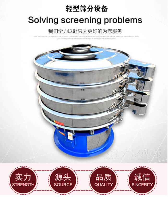油漆除雜振動篩篩分精度高、效率高、設計精巧耐用,篩網(wǎng)不堵塞,無粉塵溢散,可篩0-400目